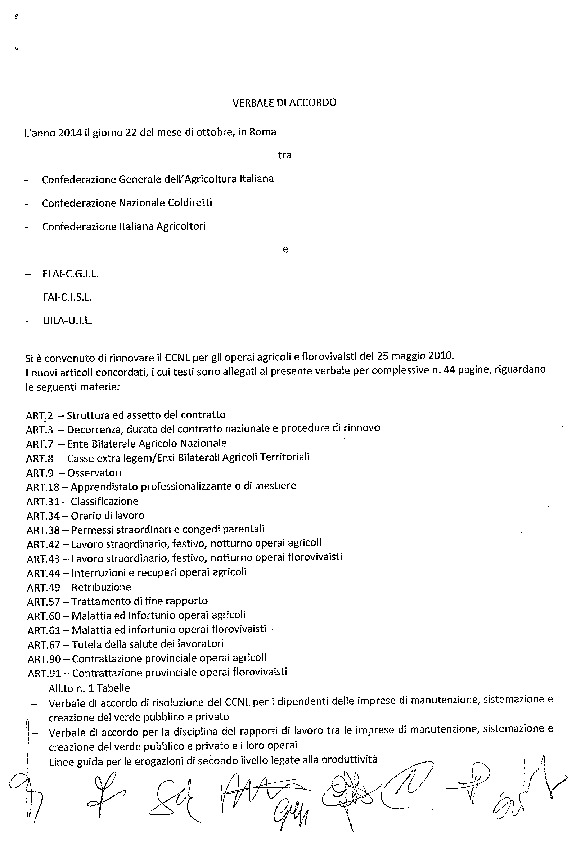 CCNL OPERAI AGRICOLI E FLOROVIVAISTI 22 10 14