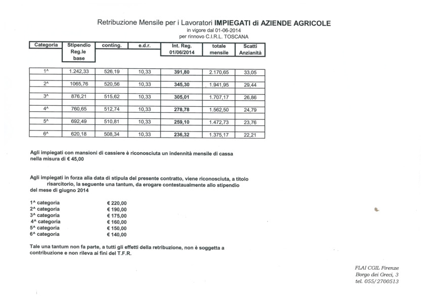 Retribuzioni Impiegati Agricoli CIRL Toscana 1 6 2014