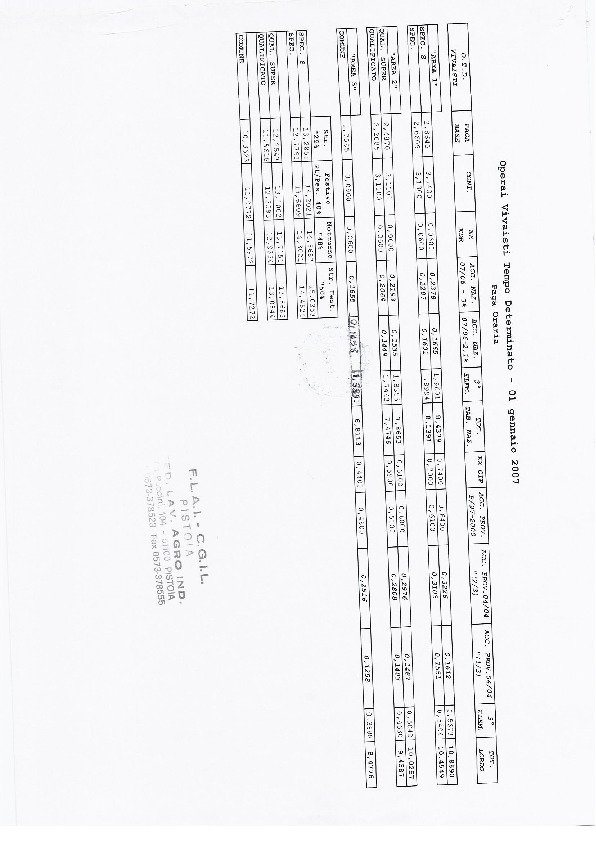 Tabelle paga oraria degli operai Floro Vivaisti a tempo determinato (OTD) e a tempo indeterminato (OTI) della provincia di Pistoia comprensiva della quota ricalcalcolata dell'integrativo territoriale provinciale. Vigenza economica dal 01/01/2007 al 30/04/2008. Formato PDF.