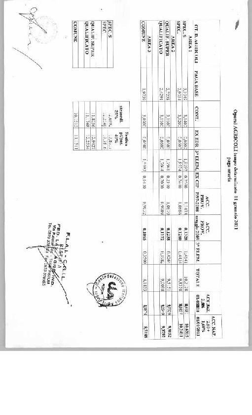 Tabelle paga oraria degli operai Agricolia tempo determinato (OTD) e a tempo indeterminato (OTI) della provincia di Pistoia comprensiva della quota ricalcalcolata dell'integrativo territoriale provinciale. Vigenza economica dal 01/05/2011 al 30/08/2012. Formato PDF.