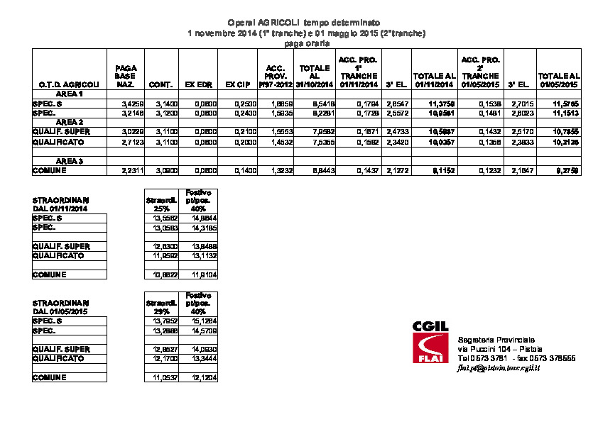 Tabelle Operai Agricoli PT 01/11/2014 (2014-2016)