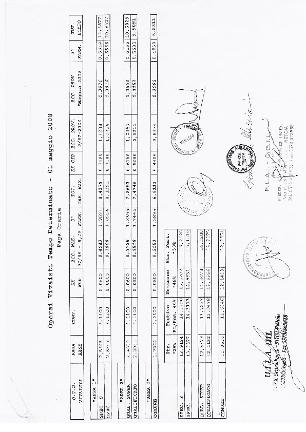 Tabelle paga oraria degli operai Floro Vivaisti a tempo determinato (OTD) e a tempo indeterminato (OTI) della provincia di Pistoia comprensiva della quota dell'integrativo territoriale provinciale. Vigenza economica dal 01/05/2008 al 30/04/2009. Formato PDF.