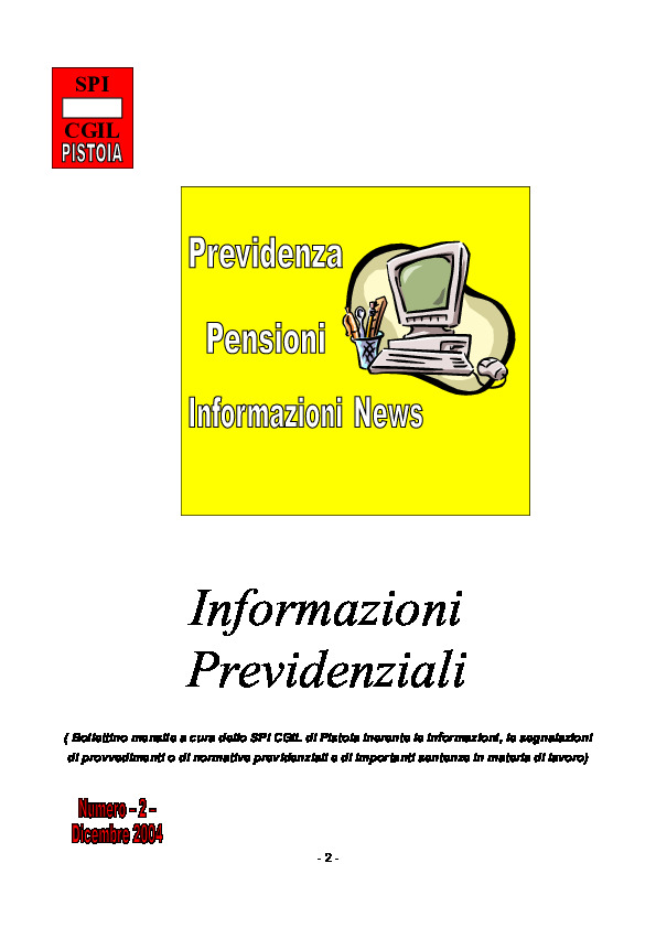 Notiziario SPI CGIL Pistoia anno I nr 2 del dicembre 2004