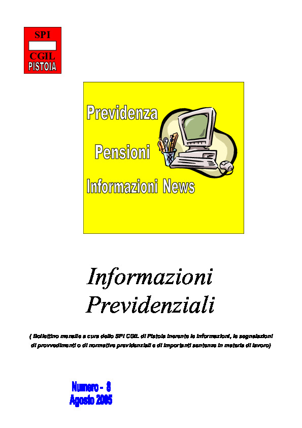 Notiziario SPI CGIL Pistoia anno II nr 8 del agosto 2005