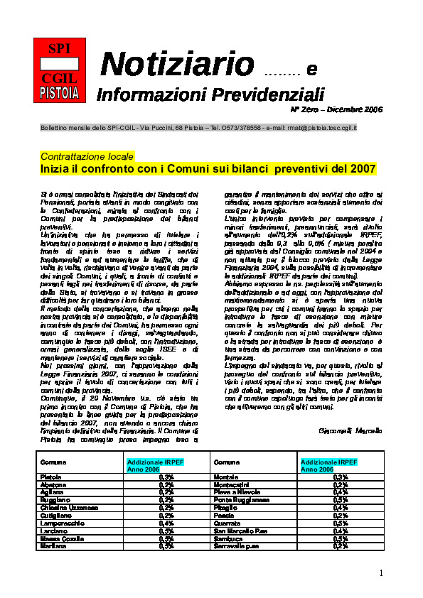 Notiziario SPI CGIL Pistoia anno III nr 12 del dicembre 2006