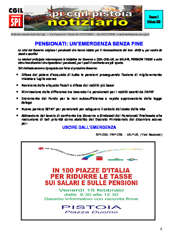 Notiziario SPI CGIL Pistoia anno V nr 2 del febbraio 2008