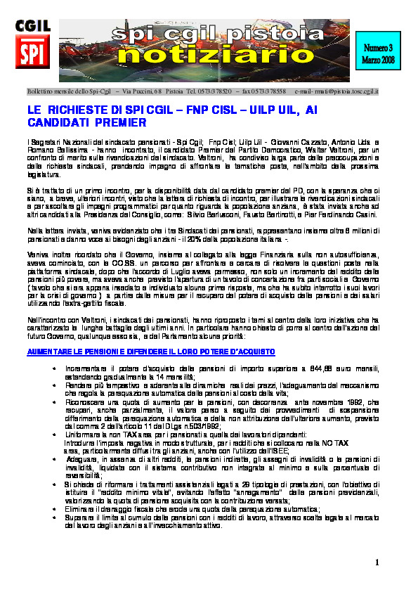 Notiziario SPI CGIL Pistoia anno V nr 3 del marzo 2008