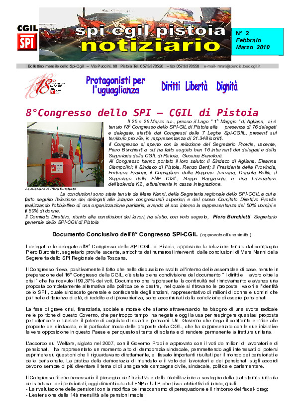 Notiziario SPI CGIL Pistoia anno VII nr 2 del febbraio-marzo 2010