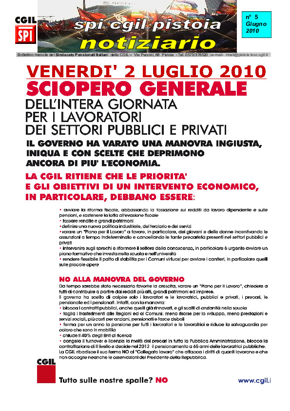 Notiziario SPI CGIL Pistoia anno VII nr 5 del giugno 2010