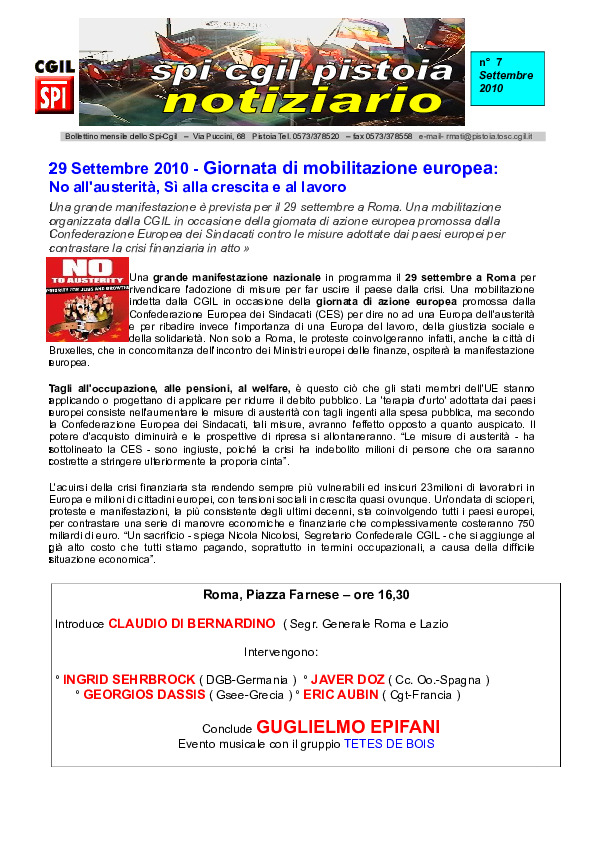 Notiziario SPI CGIL Pistoia anno VII nr 7 del settembre 2010