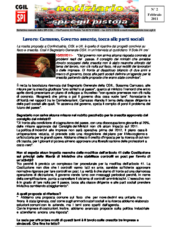 Notiziario SPI CGIL Pistoia anno VIII nr 2 del febbraio 2011