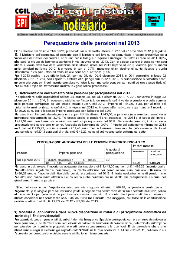 Notiziario SPI CGIL Pistoia anno IX nr 11 del dicembre 2012