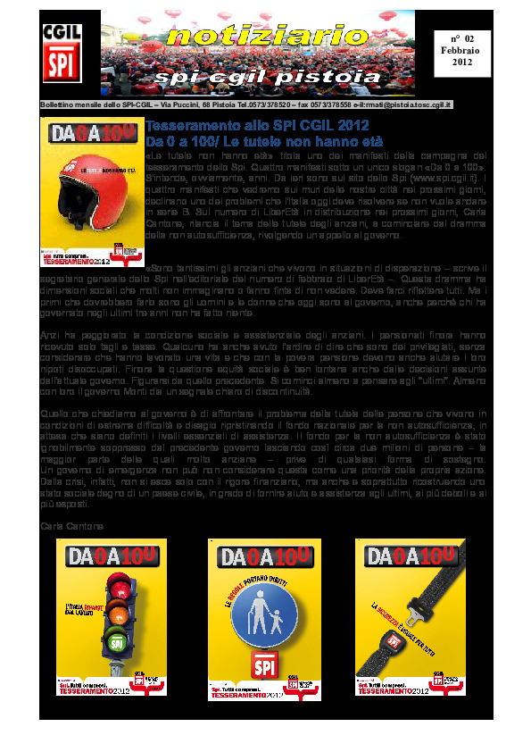 Notiziario SPI CGIL Pistoia anno IX nr 2 del febbraio 2012