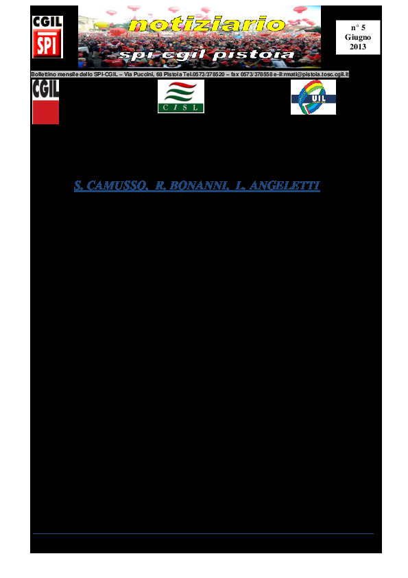 Notiziario SPI CGIL Pistoia anno X nr 5 del giugno 2013
