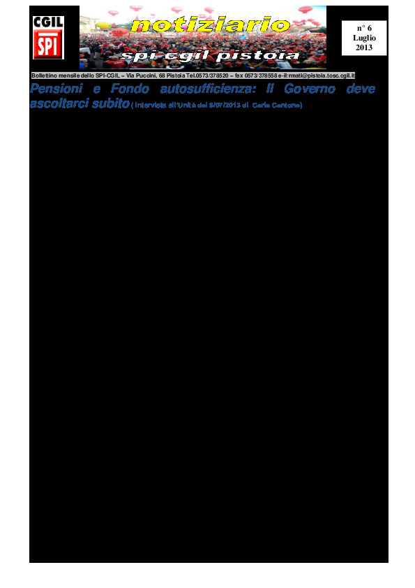 Notiziario SPI CGIL Pistoia anno X nr 6 del luglio 2013