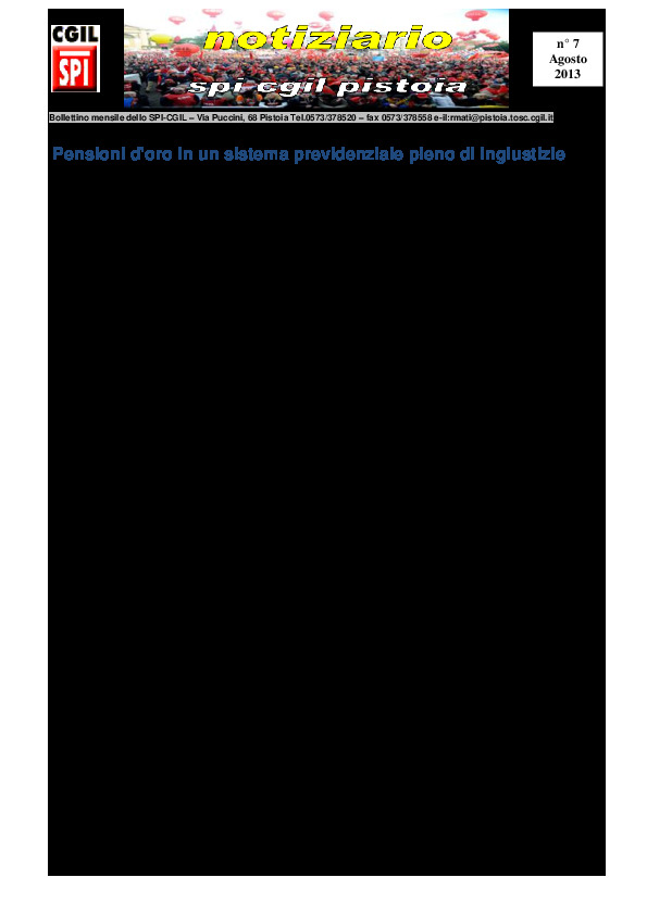 Notiziario SPI CGIL Pistoia anno X nr 7 del agosto 2013