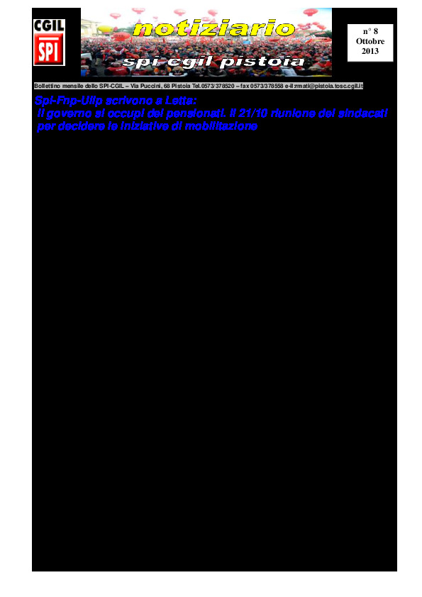 Notiziario SPI CGIL Pistoia anno X nr 9 del ottobre 2013