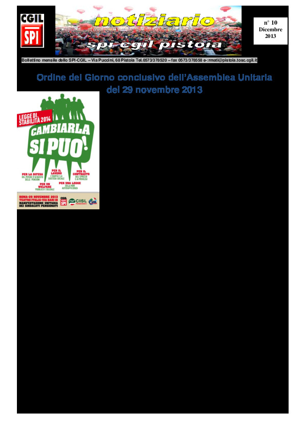 Notiziario SPI CGIL Pistoia anno X nr 11 del dicembre 2013
