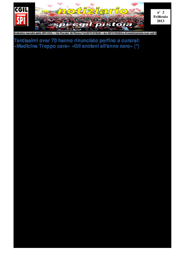 Notiziario SPI CGIL Pistoia anno X nr 2 del febbraio 2013