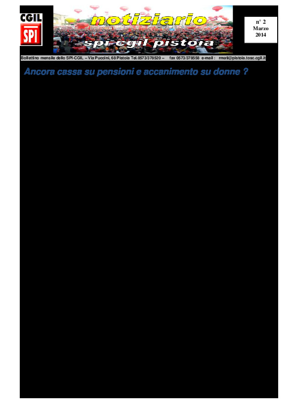 Notiziario SPI CGIL Pistoia anno XI nr 1 del febbraio 2014