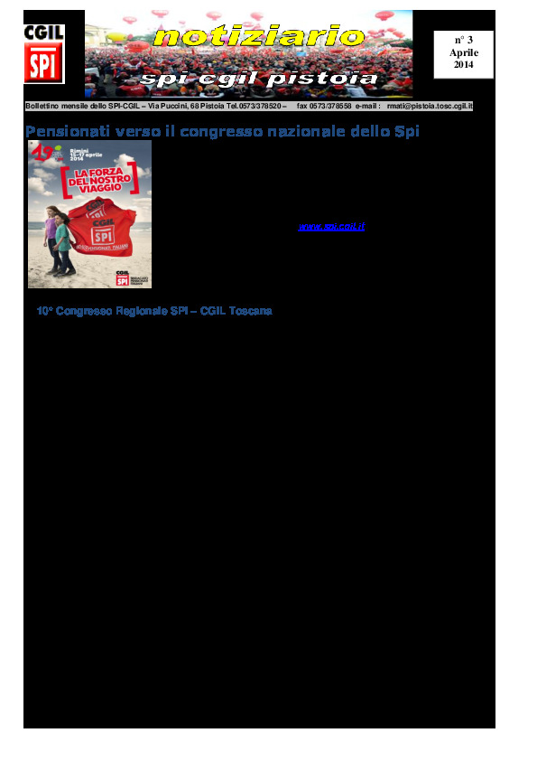 Notiziario SPI CGIL Pistoia anno XI nr 3 del aprile 2014