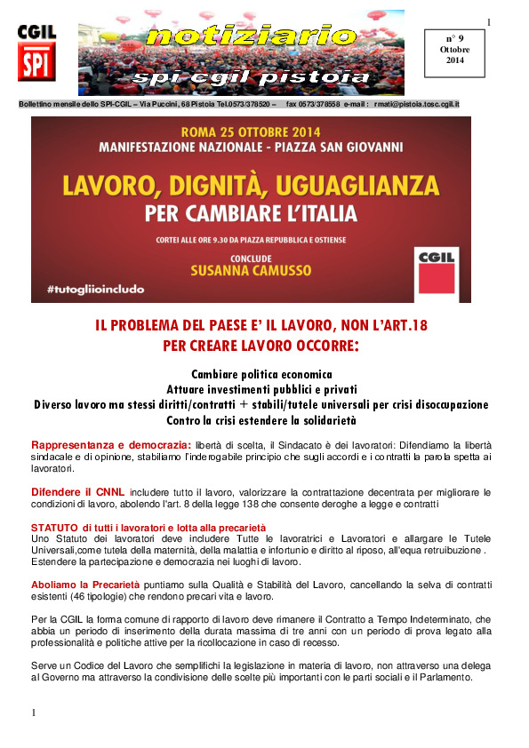 Notiziario SPI CGIL Pistoia anno XI nr 8 del ottobre 2014