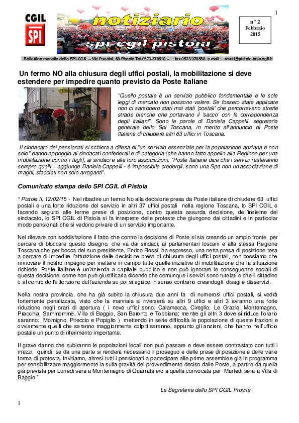 Notiziario SPI CGIL Pistoia anno XII nr 2 del febbraio 2015
