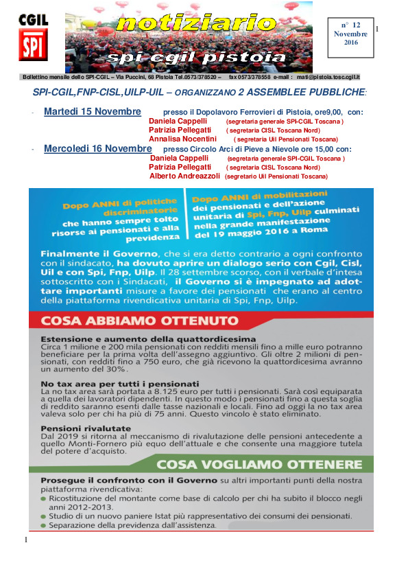 Notiziario SPI CGIL Pistoia anno XIII nr 10 del novembre 2016