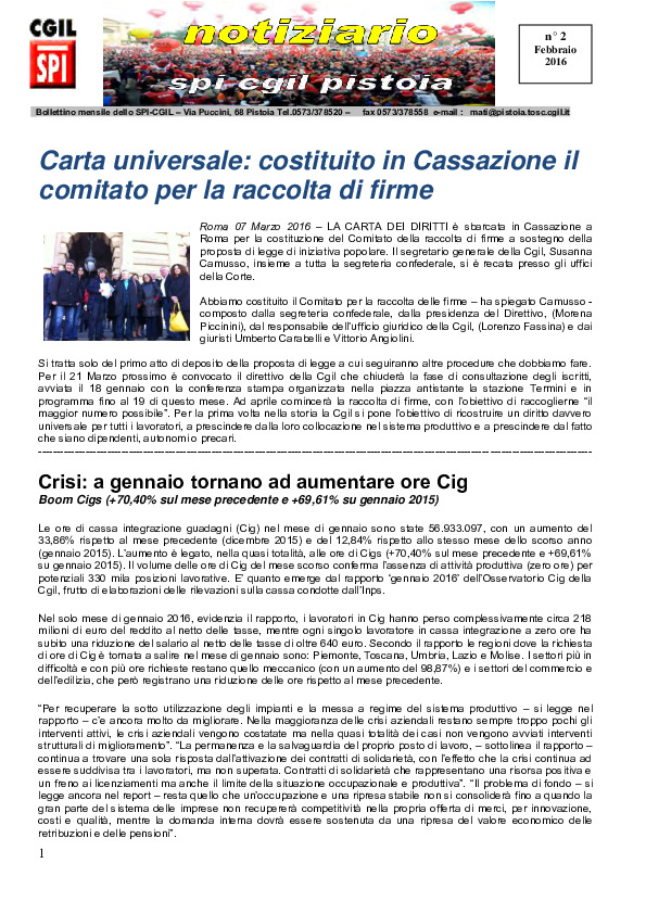 Notiziario SPI CGIL Pistoia anno XIII nr 3 del marzo 2016