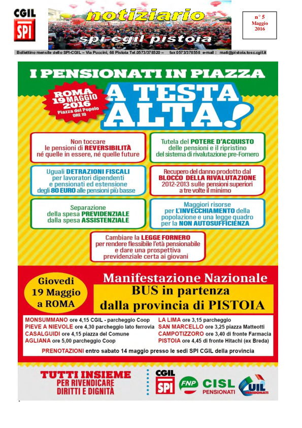 Notiziario SPI CGIL Pistoia anno XIII nr 5 del maggio 2016