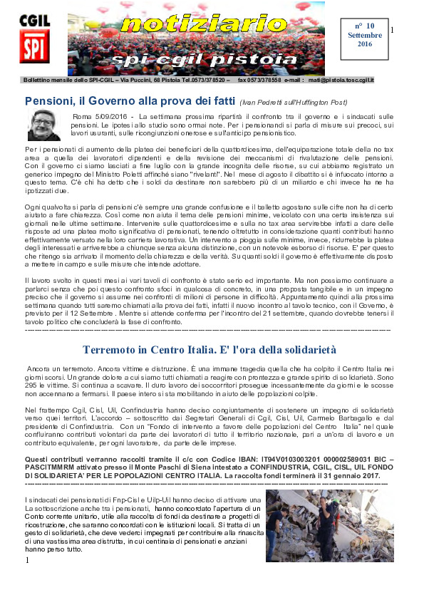 Notiziario SPI CGIL Pistoia anno XIII nr 8 del settembre 2016