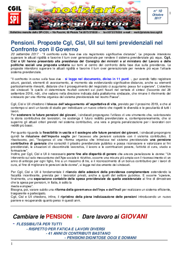 Notiziario SPI CGIL Pistoia anno XIV nr 10 del ottobre 2017