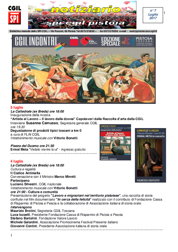 Notiziario SPI CGIL Pistoia anno XIV nr 7 del luglio 2017