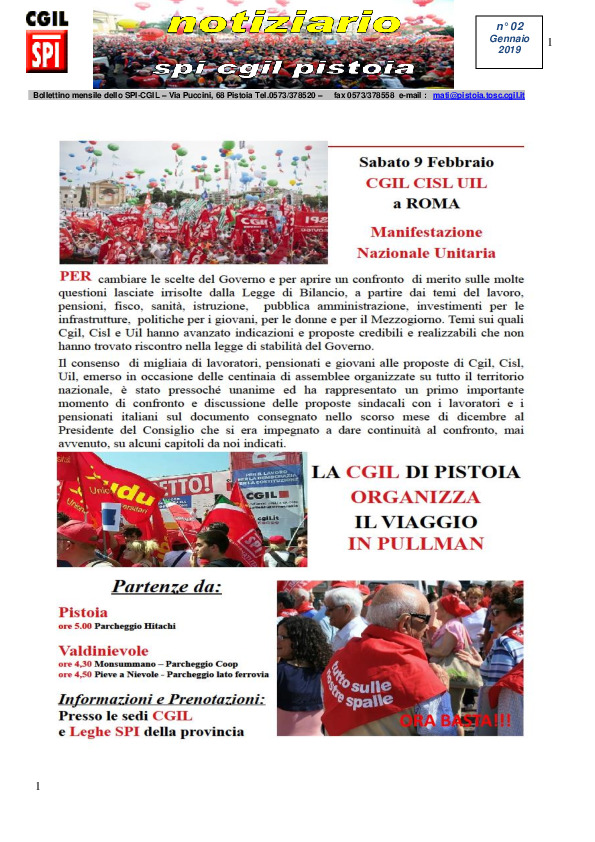 Notiziario SPI CGIL Pistoia anno XVI nr 2 speciale del gennaio 2019