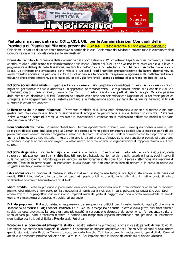 Notiziario SPI CGIL Pistoia anno XVII nr 16 del nevembre 2020