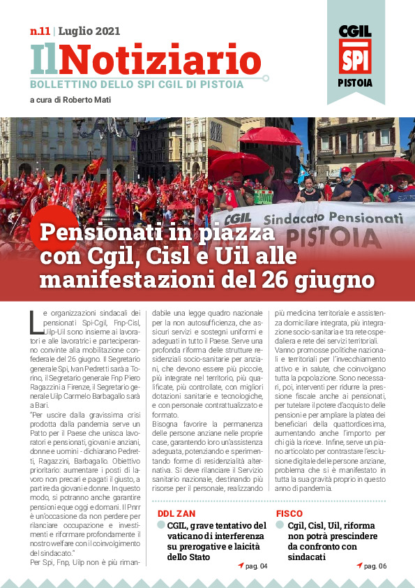 Notiziario SPI CGIL Pistoia anno XVIII nr 11 del luglio 2021