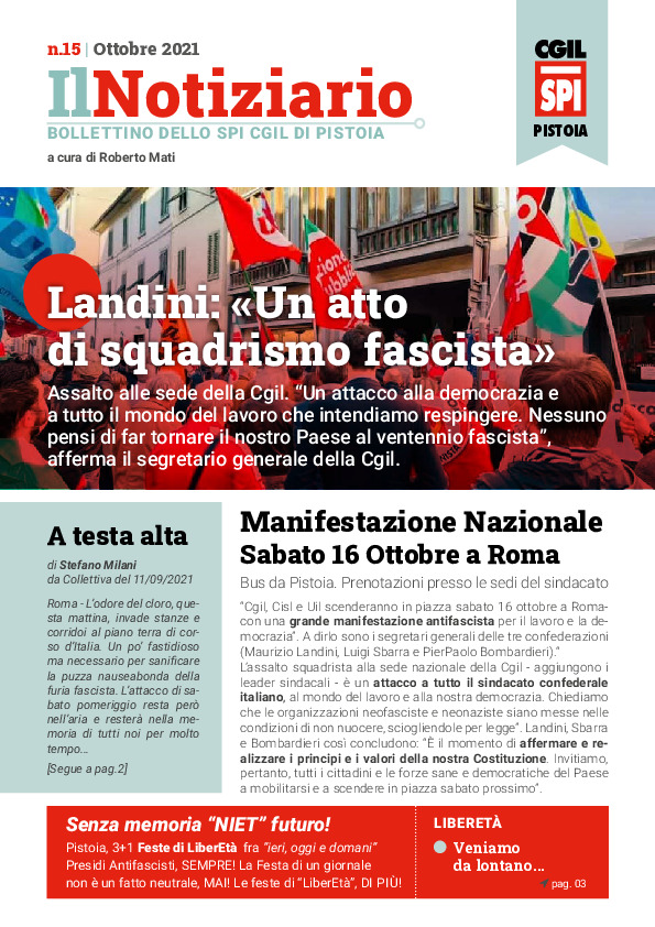 Notiziario SPI CGIL Pistoia anno XVIII nr 15 del ottobre 2021