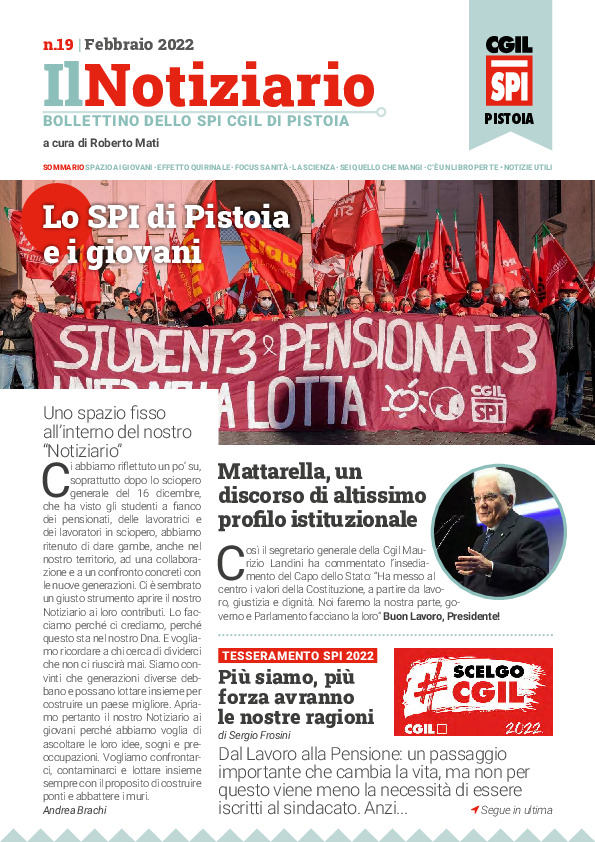 Notiziario SPI CGIL Pistoia anno XIX nr 19 del febbraio 2022