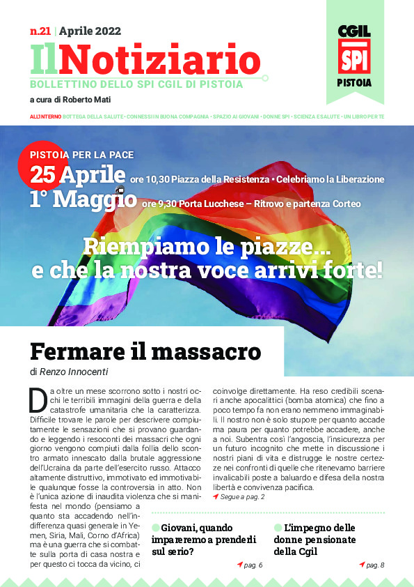 Notiziario SPI CGIL Pistoia anno XIX nr 21 dell'aprile 2022