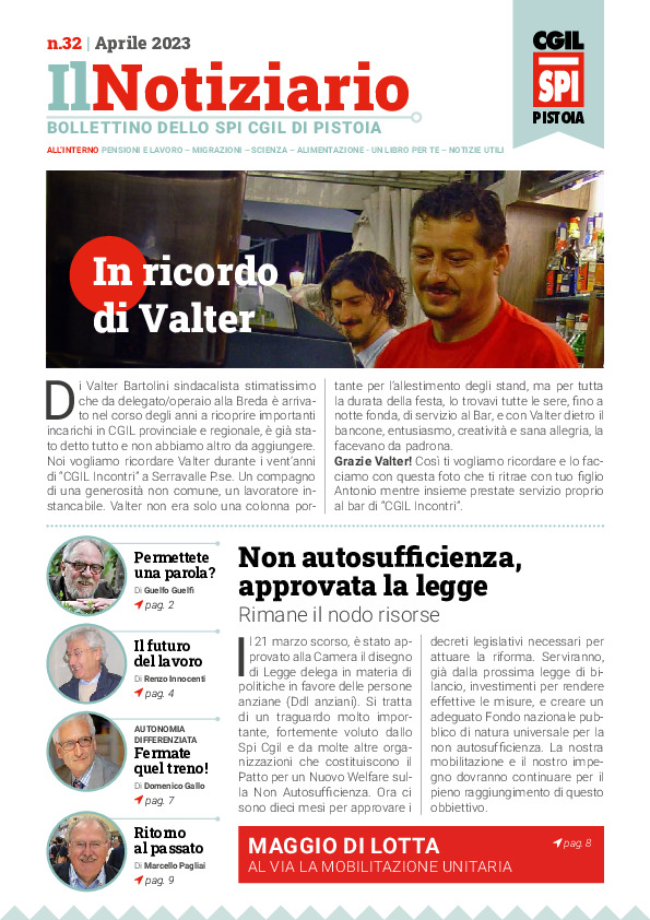 Notiziario SPI CGIL Pistoia anno XX nr 32 del'aprile 2023