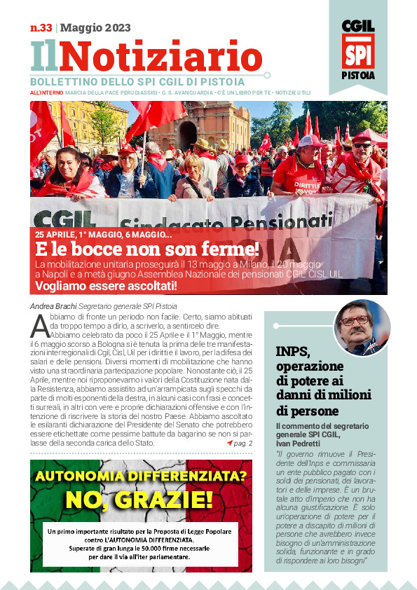 Notiziario SPI CGIL Pistoia anno XX nr 33 del maggio 2023