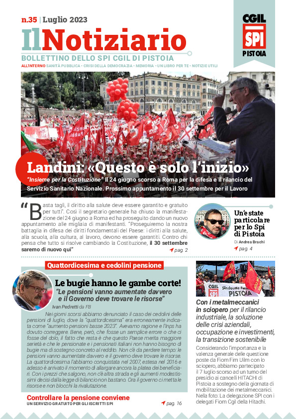 Notiziario SPI CGIL Pistoia anno XX nr 35 del luglio 2023