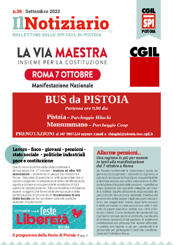 Notiziario SPI CGIL Pistoia anno XX nr 36 del settembre 2023