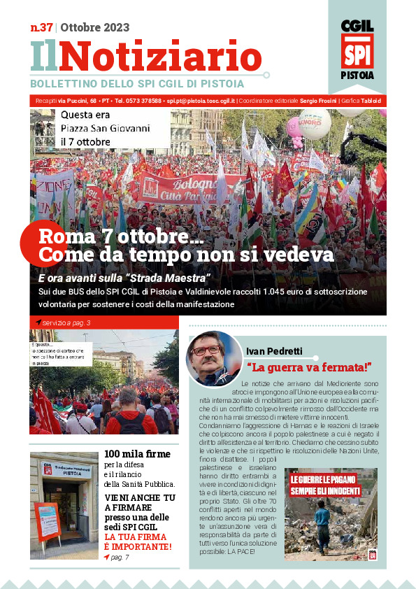 Notiziario SPI CGIL Pistoia anno XX nr 37 del'ottobre 2023