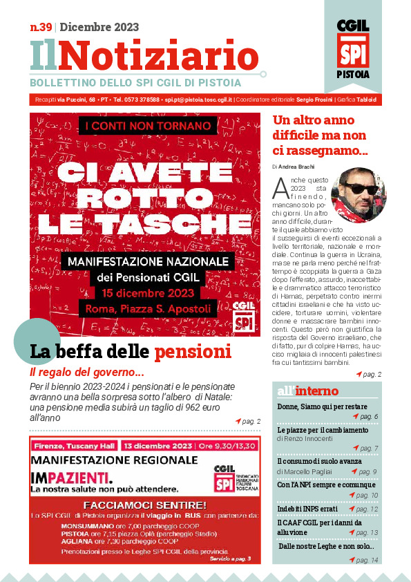 Notiziario SPI CGIL Pistoia anno XX nr 39 del dicembre 2023