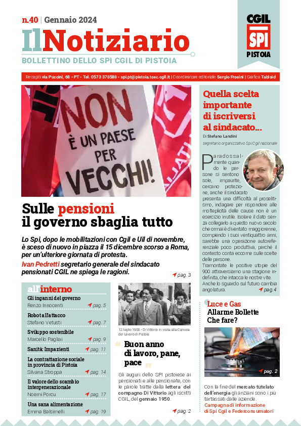 Notiziario SPI CGIL Pistoia anno XXI nr 40 del gennaio 2024