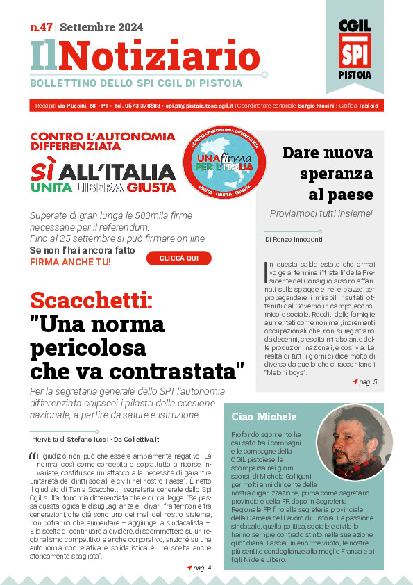 Notiziario SPI CGIL Pistoia anno XXI nr 47 del settembre 2024