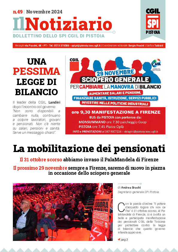 Notiziario SPI CGIL Pistoia anno XXI nr 49 del novembre 2024