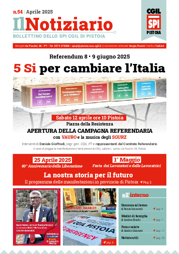 Notiziario SPI CGIL Pistoia anno XXII nr 54 dell'aprile 2025